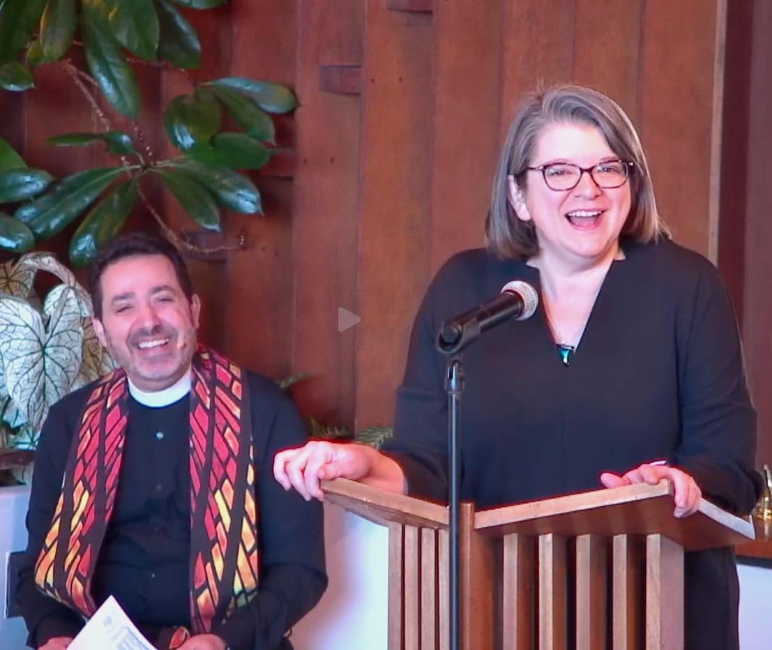 Ellen Dickinson talks to the congregation