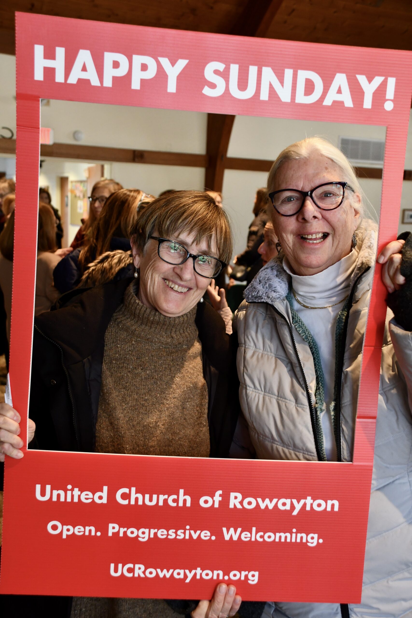 Standing in a Happy Sunday sign